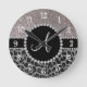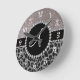 Monogram black leopard silver glitter round clock