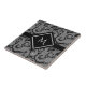 Monochrome paisley with a large horizontal black and grey band in the centre with your initial displayed on a black and white diamond-shaped matte. Just add your initial in the text field template provided or click on "Customise" to adjust the font size, type, colour, placement, etc.