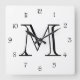 Monogram Black Script Numbers On White wccnt Square Wall Clock