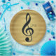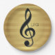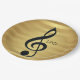 Monogram Black Treble Clef on Golden Stripes Paper Plate