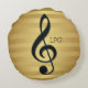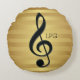 Monogram Black Treble Clef on Golden Stripes Round Cushion
