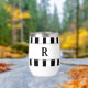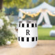 Black monogram against white gray framed area. Elegant black and white vertical summertime cabana stripes. Designs by TamiraZDesigns.
