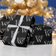 Monogram black white custom initial number pattern wrapping paper