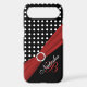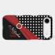 Monogrammed modern black and white polka dots pattern Vibe™ iPhone 6 case with red PRINTED ribbon and a PRINTED diamond jewel brooch. ****PLEASE NOTE that everything will as it appears on your monitor. No one will edit it for mis-alignment, typos, etc. it to add your name, initial, or other text. If you need assistance, email niteowlstudio@gmail.com.