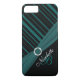 Monogrammed modern black and teal green stripes pattern iPhone 7 case with teal PRINTED ribbon and a PRINTED diamond jewel brooch. ****PLEASE NOTE that everything will print as it appears on your monitor. No one will edit it for misalignment, typos, etc. it to add your name, initial, or other text. If you need assistance, email niteowlstudio@gmail.com.