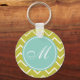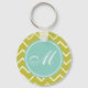 This modern, blue and green chevron, monogram keychain can be customised with your own text/monogram