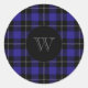Monogram Blue Black Plaid Classic Round Sticker
