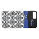 Monogrammed modern black and white damask pattern iPhone 7 case with a blue PRINTED ribbon and a PRINTED diamond jewel brooch. ****PLEASE NOTE that everything will print as it appears on your monitor. No one will edit it for mis-alignment, typos, etc. it to add your name, initial, or other text. If you need assistance, email niteowlstudio@gmail.com.