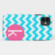 iPhone case cover in a stylish designer chevron stripes in blue features hot pink circle for initial monogram. Click the CUSTOMIZE IT button to change text, colour, size, and position to personalise your iPhone case cover. Contact Party Paper Creations for a different colour combo or if you need assistance.