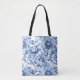 Monogram Blue Floral Bridesmaid Flower Shopping Tote Bag