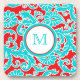 This modern and trendy monogrammed turquoise blue, red, and white floral damask coaster set would make an ideal house-warming gift for the hip, young couple. Customise it however you want!