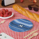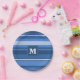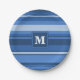 Monogram blue stripes paper plate