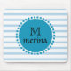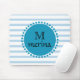Monogram Blue Teal Gold Striped Circle Mouse Mat