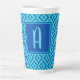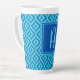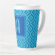 Monogram Blue Three-Tone Diamond Pattern Latte Mug