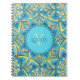Monogram Blue Turquoise Floral Mandala Pattern Notebook