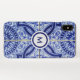 Monogram Blue + White Mediterranean Tile Pattern iPhone Case