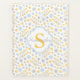 Scandinavian floral pattern, light blue + yellow monogram. Fresh & modern.