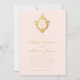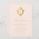 Monogram Blush Faux Gold Floral Crest Pink Wedding Invitation