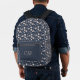 Monogram Blush Pink Navy Blue Floral Flowers Printed Backpack
