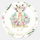 Monogram Boho Giraffe Baby Shower Floral Favour Ta Classic Round Sticker