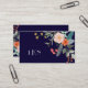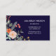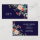 A colourful spray of graphic botanical flowers decorate this business card and it can be personalised with three monogram initials on the front. The background is a rich navy blue and the opposite side holds all your contact information.
