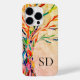 This stylish phone case is decorated with a colourful mosaic tree on a terracotta background.