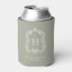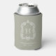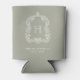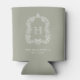 Monogram Botanical Crest Sage Green Wedding Can Cooler