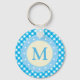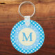 Monogram Bright Blue Gingham Pattern Key Ring