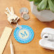 Classic gingham in bright blue to personalise with an initial.