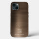 Monogram Bronze Brown Brushed Metal iPhone 13 Case. Fully personalise this elegant bronze brown faux brushed metallic print iPhone 13 case with you monogram and name.