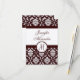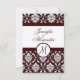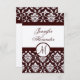 Monogram Brown Damask RSVP Cards. On Felt Paper cream colour 100lb cover weight felt-paper. It is a warm, buff-toned sheet with an embossed finish that feels like fine-art paper. Adds a touch of class to all your invitations and announcements. Customise with your monogram names and wedding colours. Add all your wedding information on the front and back of the card using Zazzle's easy to use menu prompts or contact us for custom designs.
