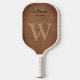 Monogram Brown Leather Script Name Rustic Pickleball Paddle