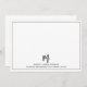 A handsome black and white brush script initial and sans serif full name note card with black line border.