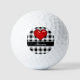 Monogram Buffalo Plaid Black and white red heart Golf Balls