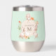 Monogram Cute Bunny Rabbits Floral Easter Personalised Name Wine Tumblers features your personalised name and monogram surrounded by a floral wreath in orange, gold and greenery with three cute bunny rabbits holding a heart. Perfect for Easter, birthday, valentine's day, Christmas and more. Designed by ©Evco Holidays www.zazzle.com/store/evcoholidays