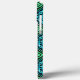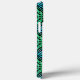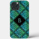 A black monogram iPhone 13 Pro Max Case with a blue-green Celtic knot repeated tile design. Make it personally yours with your very own monogram. Also available for other phone types!