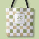 Monogram Chequered Green Modern Simple Initals Tote Bag