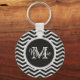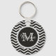 Monogram, Chevron, Pattern, Black, Silver Key Ring