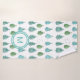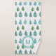 It is decorated with a watercolor pattern of Christmas trees and stars in shades of teal, turquoise and green on a white background.