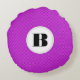 A cute pattern made up of little circles and squares on a purple magenta background. Bold black monogram in a bright white circle, personalise with your own initial.