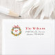Elegant Holiday Return address Label featuring a hand painted watercolor wreath with oranges and red bow with Monogram in the center.
