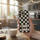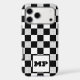 Make a bold statement with this Classic Black and White Checkered Monogram Phone Case. Featuring a timeless racing-style checkerboard pattern, this design stands out with a unique dotted halftone texture on the white tiles, adding a modern, high-contrast edge to a vintage favorite.