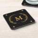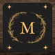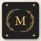 Add a touch of elegance to your home with this sophisticated monogram beverage coaster. Featuring a sleek black background adorned with a golden wreath and monogram letter "M" at the centre, this coaster is both stylish and functional. The delicate wreath design and star accents bring a sense of refinement and charm, making it a perfect addition to your living room, dining area, or office space.
