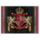 Create your very own aristocratic Coat of Arms, Emblem, Insignia or Family Crest with this beautiful, classic escutcheon or shield design. Crimson red patterns decorate a shield topped with golden crown and flanked by mediaeval heraldic lion or griffin. A matching top banner holds your custom wedding date / birth date / slogan or battle cry. The shield has space for your monogram initials. Bottom banner carries your family name. There is also space below for your favourite quote, motto or message. Replace the sample text with your own for a personalised gift. A gender neutral design that will work for families, groups, couples or individuals. Makes a wonderful gift for Wedding, Anniversary, Birthday, Retirement, Promotion, Father’s Day, Bachelor Party, Wedding Shower, Graduation, International Heraldry Day, Mediaeval or Fantasy-themed parties and other special occasions.