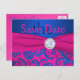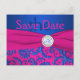 ****PLEASE NOTE that the ribbon and jewels are printed images, and are not real. This monogrammed cobalt blue and fuchsia pink floral damask save the date post card matches the wedding invitation shown below. If you require any changes, or want additional matching items, email niteowlstudio@gmail.com with your request.
