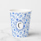 Monogram, Cobalt Blue Tropical Flowers Pattern 8oz Paper Cups