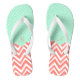 Monogram Coral Chevron with Mint Polka Dot Pattern Flip Flops