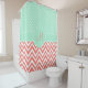 Monogram Coral Chevron with Mint Polka Dot Pattern Shower Curtain