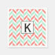 Monogram Coral Pink and Mint Green Herringbone Napkin