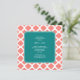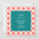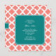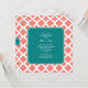 Monogram Coral Pink Quatrefoil Pattern with Teal Invitation